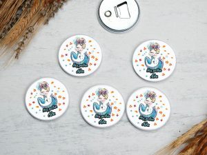 Yapraklar ve deniz kızı temalı buton açacak magnet