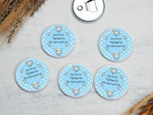 Yıldız arka zeminli, diş peri temalı buton açacak magnet