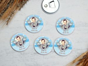 Yıldız nazar boncuğu ve uçak desenli fotoğraf baskılı buton açacak magnet