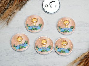 Yeşil yaprak çerçeveli aslan temalı buton açacak magnet