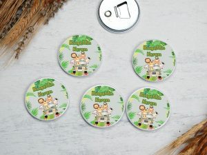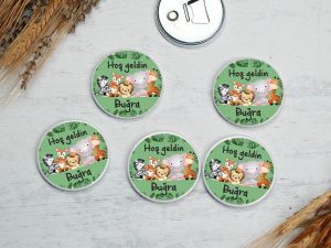 Yeşil yapraklar ve safari temalı buton açacak magnet