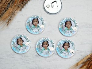 Balon ve mavi beyaz çizgi, nazar boncuk desenli buton açacak magnet