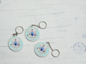 Renkli puantiye ve gülen diş temalı fotoğraf baskılı açacak anahtarlık