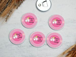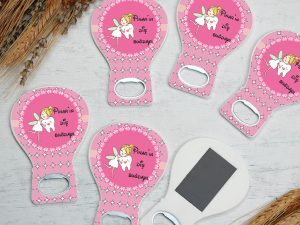Pembe zemin, yıldız desenli, diş perisi temalı yuvarlak açacak magnet