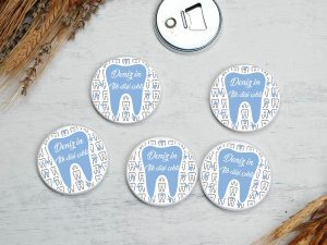 ₺20,00 – ₺28,00Dik Açacaklı Magnet Sevdiklerinize özel günlerde size ait bir hatıra bırakmak isterseniz bu ürün tam size göre. Düğün, Nişan, Nikâh, Kına, Doğum Günü, Sünnet, Mevlit, Diş Buğdayı gibi tüm özel günlerinizde kullanabilirsiniz.