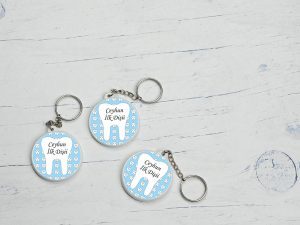 Gülen diş ve diş fırçası desenli fotoğraf baskılı açacak anahtarlık