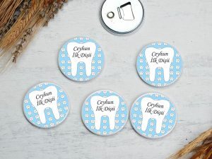 Gülen diş ve diş fırçası desenli fotoğraf baskılı buton açacak magnet