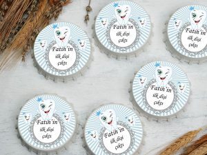 Göz kırpan taçlı diş temalı yuvarlak açacak magnet
