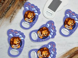Yuvarlak çerçeve içerinde aslan temalı ayak açacak magnet