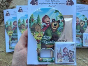 Maşa ve Koca Ayı Temalı Balon Açacak Magnet (Magnet+Çikolata+Kahve)