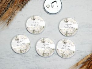 Çiçekler ve yaprak desenli yuvarlak açacak magnet