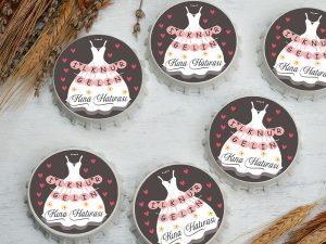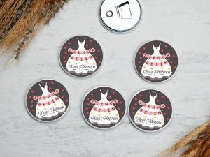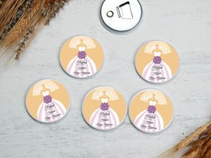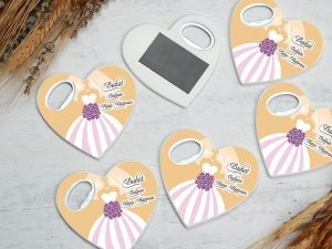 Gelinlik ve kalp desenli yuvarlak açacak magnet