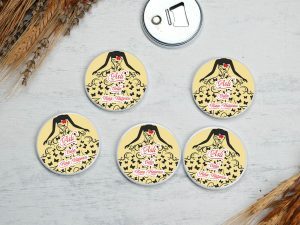 Kırmızı gelinlik temalı yuvarlak açacak magnet