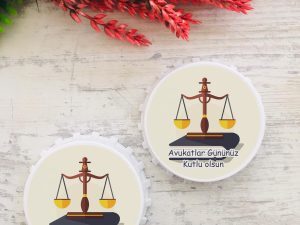 Avukat Temalı, Terazi, Kitap Desenli Yuvarlak Açacak Magnet