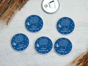 ₺20,00 – ₺28,00Dik Açacaklı Magnet Sevdiklerinize özel günlerde size ait bir hatıra bırakmak isterseniz bu ürün tam size göre. Düğün, Nişan, Nikâh, Kına, Doğum Günü, Sünnet, Mevlit, Diş Buğdayı gibi tüm özel günlerinizde kullanabilirsiniz.