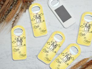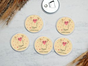 ₺20,00 – ₺28,00Dik Açacaklı Magnet Sevdiklerinize özel günlerde size ait bir hatıra bırakmak isterseniz bu ürün tam size göre. Düğün, Nişan, Nikâh, Kına, Doğum Günü, Sünnet, Mevlit, Diş Buğdayı gibi tüm özel günlerinizde kullanabilirsiniz.