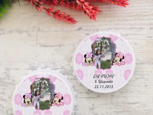 Pembe Çiçek, Minnie Mause Desenli, Yuvarlak Açacak Magnet