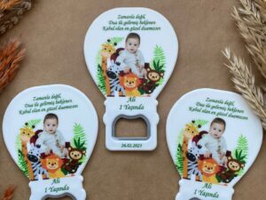 Safari temalı fotoğraf baskılı isme özel balon açacak magnet