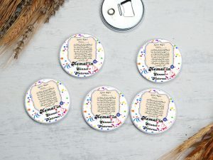 Renkli puantiye ve dua temalı yuvarlak açacak magnet