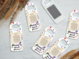 ₺20,00 – ₺28,00Dik Açacaklı Magnet Sevdiklerinize özel günlerde size ait bir hatıra bırakmak isterseniz bu ürün tam size göre. Düğün, Nişan, Nikâh, Kına, Doğum Günü, Sünnet, Mevlit, Diş Buğdayı gibi tüm özel günlerinizde kullanabilirsiniz.