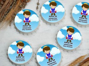 Pelerin ve taçlı sünnet çocuğu temalı yuvarlak açacak magnet