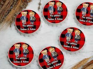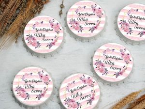 Gül ve çiçek temalı isme özel yuvarlak açacak magnet