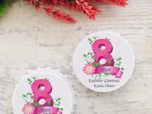 Pembe Çiçek, Sarmaşık Desen, 8 Mart Yazılı Yuvarlak Açacak Magnet