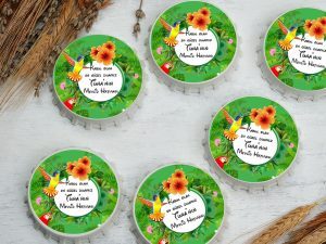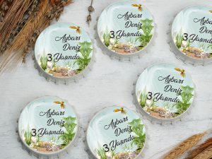 Papağan ve deniz doğum günü temalı yuvarlak açacak magnet