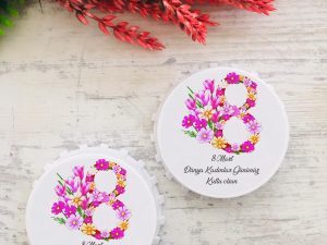 Çiçek Desenli, 8 Mart Yazılı Yuvarlak Açacak Magnet
