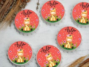 Çiçek ve zürafa temalı yuvarlak açacak magnet
