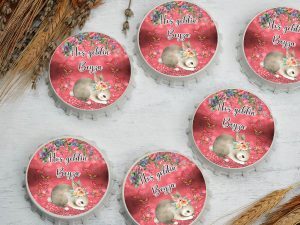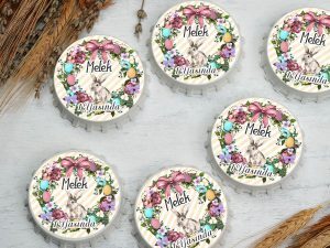 Çiçek taçlı tavşan temalı yuvarlak açacak magnet