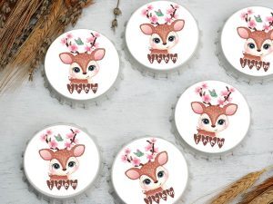 Çiçek ve geyik temalı yuvarlak açacak magnet