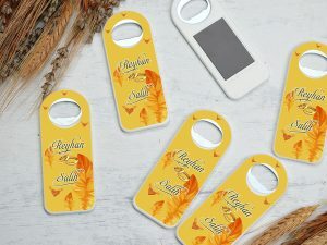₺20,00 – ₺28,00Dik Açacaklı Magnet Sevdiklerinize özel günlerde size ait bir hatıra bırakmak isterseniz bu ürün tam size göre. Düğün, Nişan, Nikâh, Kına, Doğum Günü, Sünnet, Mevlit, Diş Buğdayı gibi tüm özel günlerinizde kullanabilirsiniz.