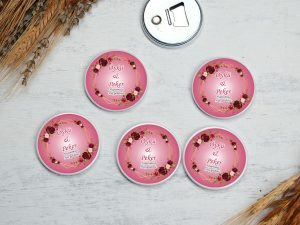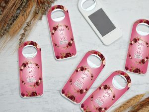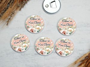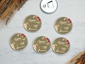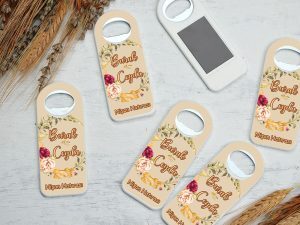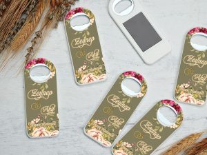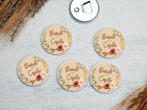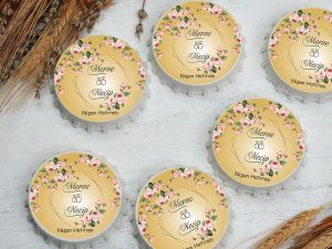 Güller ve yüzük desenli isme özel buton açacak magnet
