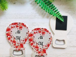 ₺20,00 – ₺28,00Dik Açacaklı Magnet Sevdiklerinize özel günlerde size ait bir hatıra bırakmak isterseniz bu ürün tam size göre. Düğün, Nişan, Nikâh, Kına, Doğum Günü, Sünnet, Mevlit, Diş Buğdayı gibi tüm özel günlerinizde kullanabilirsiniz.