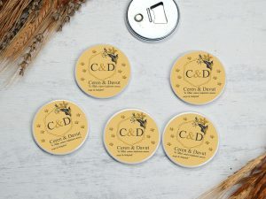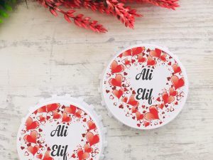 Güller ve yüzük desenli isme özel yuvarlak açacak magnet