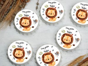 Gülen oturan aslan temalı yuvarlak açacak magnet
