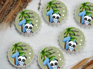 Gülen panda ve bir yaş temalı yuvarlak açacak magnet