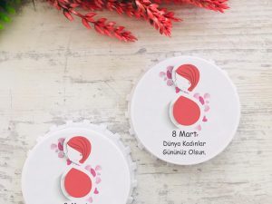 Kadın, Kalp Desenli, 8 Mart Yazılı Yuvarlak Açacak Magnet