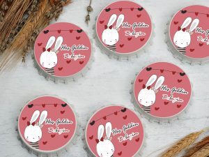 Kalp ve tavşan temalı yuvarlak açacak magnet