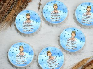 Yıldız ve mavi zemin desenli, yuvarlak açacak magnet