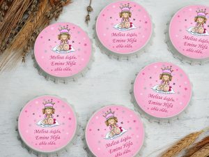 Yıldız ve puantiye taç desenli yuvarlak açacak magnet