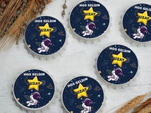 Yıldıza tutunan astronot temalı yuvarlak açacak magnet