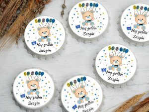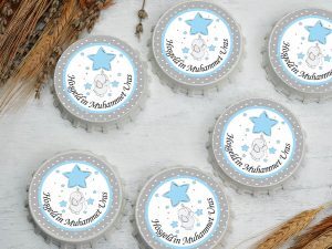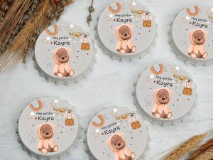 Yıldızlar ve oturan ayıcık temalı yuvarlak açacak magnet