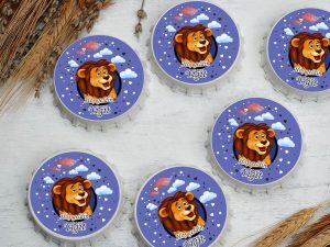 Yuvarlak çerçeve içerinde aslan temalı yuvarlak açacak magnet