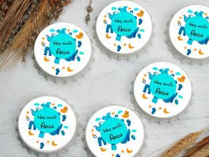 Yuvarlak çerçeve ve bebek eşyaları desenli yuvarlak açacak magnet