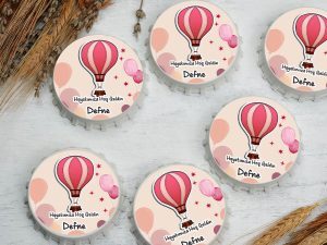 Yıldızlar ve uçan balon temalı yuvarlak açacak magnet