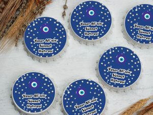 Yıldızlar ve nazar boncuk desenli yuvarlak açacak magnet