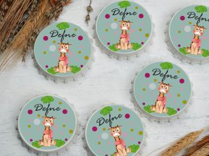 Yuvarlak puantiye ve zürafa temalı yuvarlak açacak magnet