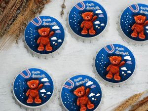 Bulut üzerinde yıldız tutan ayıcık temalı yuvarlak açacak magnet